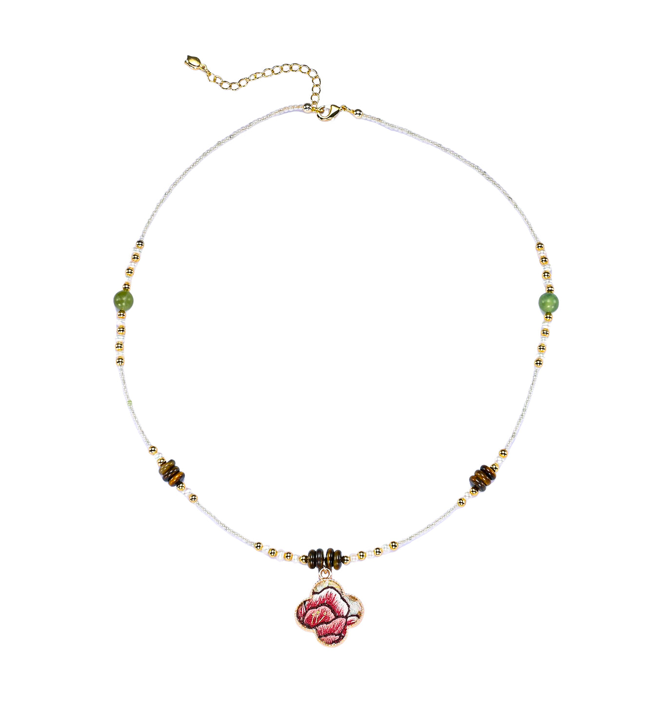 Design Long Style Four-leaf Clover Embroidered Sachet Necklace(Light brown beads)