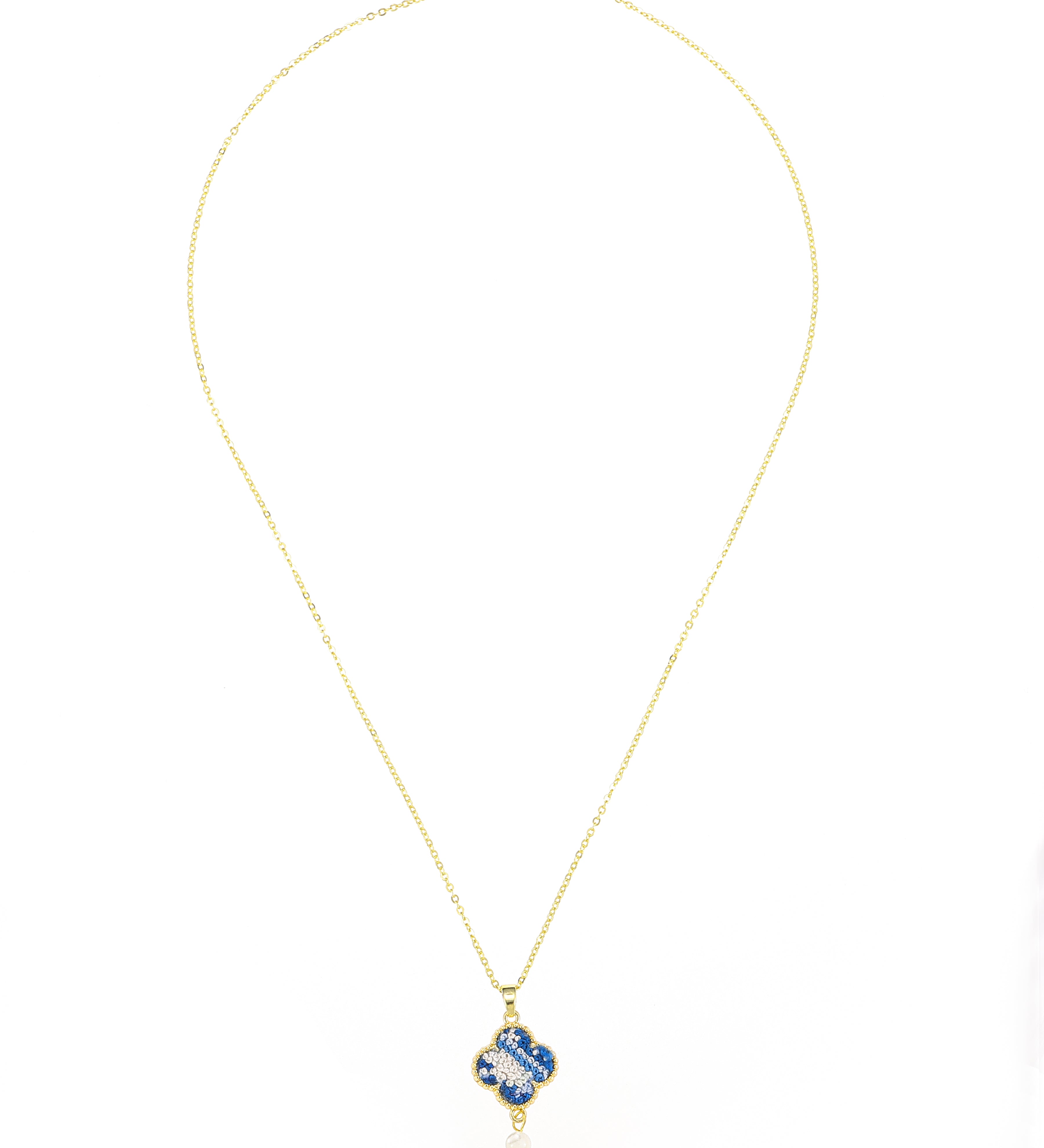 Design Long Style Four-leaf Clover Embroidered Sachet Necklace(White beads)